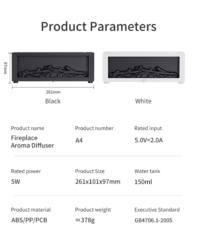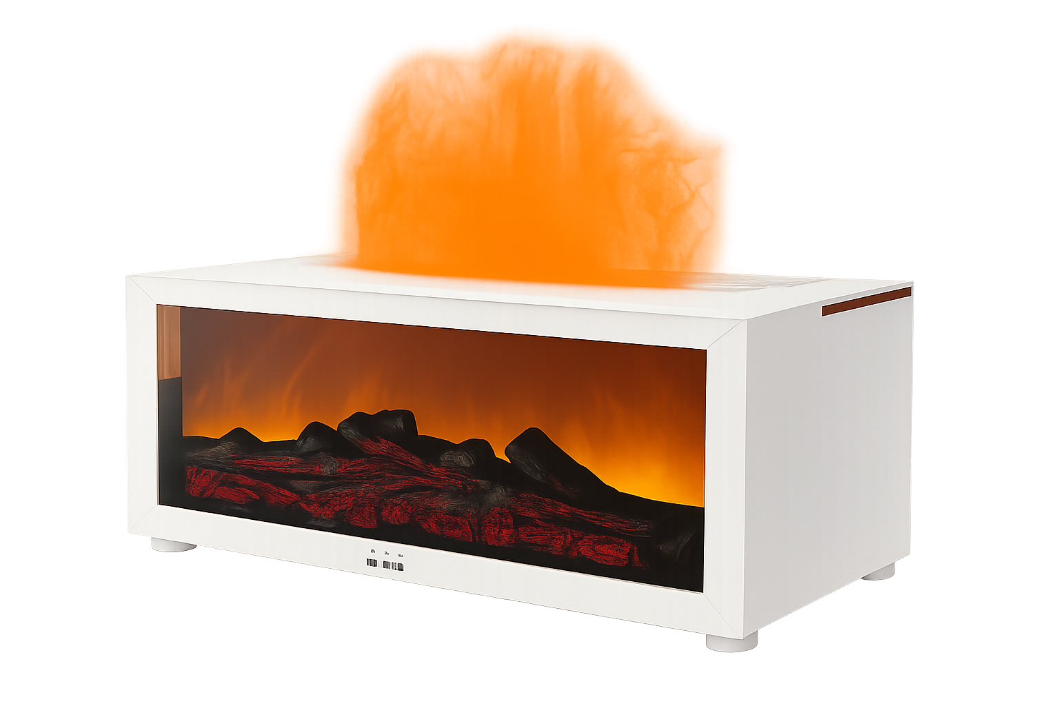 A: It uses ultrasonic mist and warm LED lighting to mimic a natural flame safely.